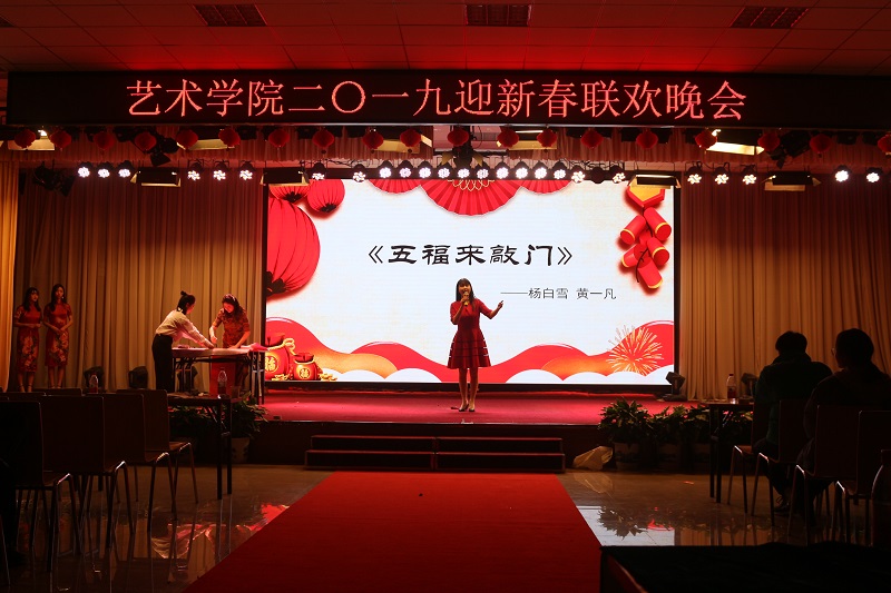 晚会以回顾2018、迎接2019为主题,节目精彩纷呈。ac米兰官方网站舞蹈队拉开晚会活动的序幕,首先回顾总结2018,晚会对ac米兰官方网站2018年涌现出学生先进集体及个人进行了表彰。通过表彰,在全体学生中树立了榜样,树立了标杆。随后迎接展望2019,联欢晚会正式开始,米兰官网全体师生同台表演,给大家带来了一场视觉、听觉盛宴。ac米兰官方网站合唱队演唱的《我爱你中国》,凭借其激昂的旋律带动观众火热的心;环境设计教研室的老师们朗诵的《青春的赞歌》,让大家重温了青春的美好;视觉传达教研室老师们带来的歌曲《走在牧院的街头》,让我们再一次畅游在校园之中;服装教研室老师们的《金曲串烧》带我们重温金庸的武侠世界;数字艺术教研室朱逢鑫、魏意苹老师的《山鬼箫鼓合鸣》表演,让人耳目一新;基础教研室老师们的《古琴演奏》让我们领略了厚重的传统文化;公共艺术教研部马一菲老师带领学生的演奏的器乐合奏《兰亭序》展示了不俗的乐器表演功力;辅导员们朗诵的《我们的南方和北方》,歌颂改革开放四十周年国家的变化和进步;杨白雪、黄一凡老师的歌曲及现场书法表演《五福来敲门》,更是给迎新春晚会增添了光彩;还有同学们的精彩表演:演唱歌曲《星空》;相声《满腹经纶》;心理剧《暗恋不到底,天使来帮忙》,以及ac米兰官方网站礼仪队的走秀,将晚会气氛一次又一次地推向高潮。最后,晚会在大家的欢呼声中落下帷幕。