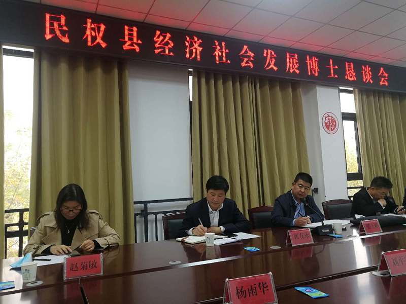 成立大会会后宗建伟和杨雨华博士参加了民权县经济社会发展博士恳谈会,首先民权县副县长张士彬介绍了民权县的发展和产业结构状况,建议博士团成员发挥各自的专业优势和团队优势,建言献策。其后民权县农业农村局局长张友永主要从湿地、林业、农田、农产品加工等方面发展现状、取得的成绩、面临的问题进行了详细介绍。最后,在座谈会上,两位博士结合民权县实际情况指出,以生态为内在线索,从湿地水生态保护到湿地生态文化旅游的建构与认同策略,从民权县农林水田到生命共同体理论与现实问题等不同角度,探索和挖掘与民权生态旅游、古黄河文化旅游的相关专业问题,为加快推进民权规划建设、乡村振兴等方面提出意见和建议。最后,两位博士期待河南牧业学院ac米兰官方网站与民权县在教育、科技、农业、人才培训、文化、旅游等方面开启校地合作,同时谋求更深层次的合作和交流。