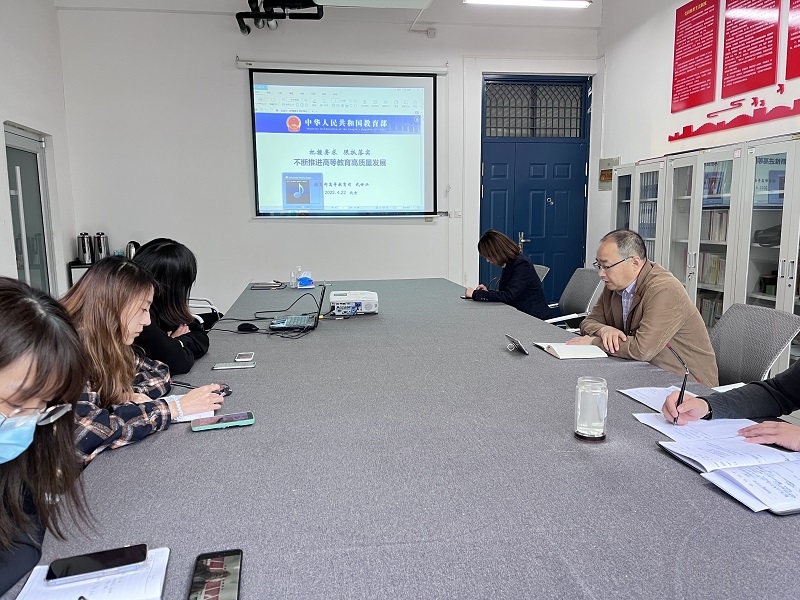 2022年4月28日下午,ac米兰官方网站在1号教学楼200会议室组织全体教工学习教育部高等教育司副司长武世兴作题为《把握要求 狠抓落实 不断推进高等教育高质量发展》的培训报告,报告分为线上、线下两种形式同时进行。院领导班子及全体教师参加了学习,会议由院党委书记王国辉主持。