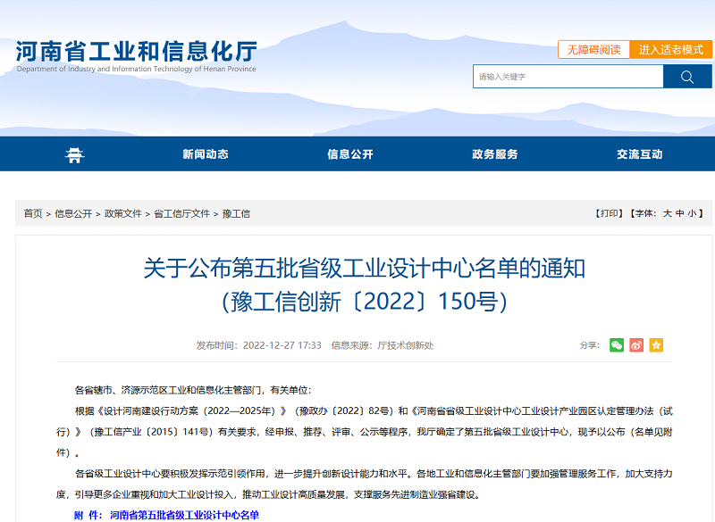 近日,从河南省工业和信息化厅获悉,我校ac米兰官方网站申报的“河南省陶瓷工业设计中心”被批准为第五批省级工业设计中心,这是ac米兰官方网站在科研创新平台建设工作方面取得的又一重大突破。该平台的获批是ac米兰官方网站党委、ac米兰官方网站陶瓷创研中心紧密围绕省政府《设计河南建设行动方案(2022—2025年)》(豫政办〔2022〕82号)文件精神努力进取的结果。将为我校艺术专业开展高水平应用研究、提升创新设计能力和水平提供强有力的支撑,同时为我校艺术学科跨越式发展提供发展动力和资源保障,对我校的艺术设计学科建设和科研水平提升,以及创新型设计人才培养起到积极的推动作用。