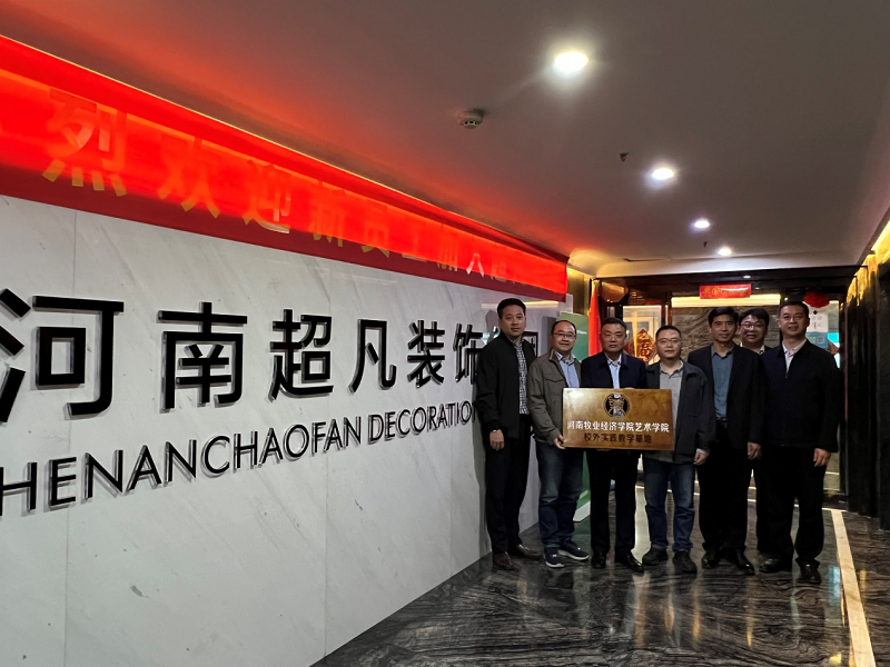 4月14日,ac米兰官方网站党委书记王国辉、院长张鹏、副院长田志涌、弘雅书院院长王友峰一行赴河南超凡装饰设计有限公司访企拓岗,与企业负责人进行交流座谈并进行校外实践教学基地授牌仪式。