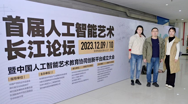 近日,首届人工智能艺术长江论坛(ArtI2023)暨中国人工智能艺术教育协同创新平台成立大会在华中科技大学召开。本次论坛由中国产学研合作促进会支持,华中科技大学光影交互服务技术文旅部重点实验室等单位发起成立,目前已有全国300多所高校和相关重点行业企业参与。我校ac米兰官方网站院长张鹏、视觉传达设计教研室主任李好敏、崔栋博士受邀参加会议,我校成为该创新平台首批会员单位。