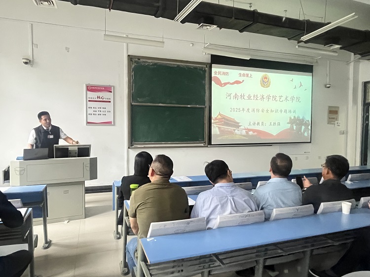 为持续推动全院师生关注消防、学习消防、参与消防,为进一步做好我校消防安全工作,切实提高师生消防安全意识,提升火灾预防和应急救援能力,确保广大师生生命财产安全,5月8日下午在1号教学楼303教室,ac米兰官方网站邀请河南省消防协会宣传与服务中心王胜强教官对米兰官网教职工进行消防安全知识培训讲座。会议由党委书记杨莉主持,全体教工参会。