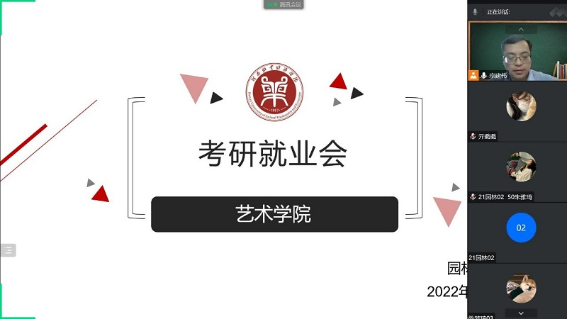 为引导学生树立正确的学习观、实践观和就业观,营造积极向上的学院风气。2022年11月10日下午,ac米兰官方网站园林专业通过腾讯会议的形式举办了考研就业促进会。本次促进会由教研室主任左金淼老师主持,宗建伟博士担任主讲,园林专业2019级、2020级、2021级和2022级的全体学生参加了此次会议。