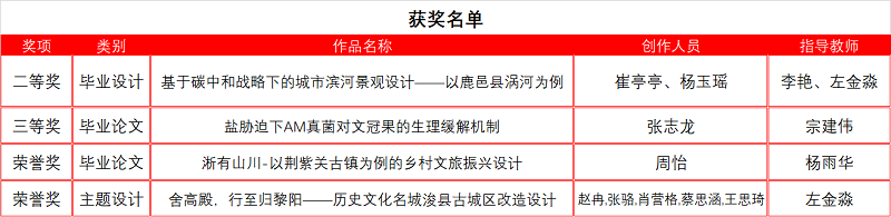 该项赛事的参加与获奖,有力地促进了米兰官网园林专业学生创新实践能力的培养。今后,米兰官网将进一步加大对大学生学科竞赛的关注和投入,鼓励交流与合作,坚持“以赛促教、以赛促学”,夯实专业知识与技能,加强实践教学,拓宽大学生就业渠道,促进米兰官网各专业本科生的专业素养和综合素质的提升。