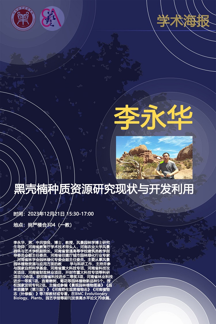 2023年12月21日下午,河南农业大学风景园林与ac米兰官方网站副院长、博士研究生导师、河南省教育厅学术技术带头人、河南普通高校建筑类教学指导委员会副主任委员李永华教授在龙子湖校区1号教学楼合304教室一场题为“黑壳楠种质资源研究现状与开发利用”的学术报告。报告由ac米兰官方网站院长张鹏主持,全体教师及园林专业全体学生参加。