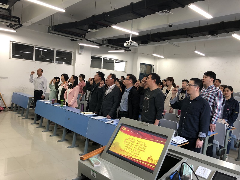 活动在大家集中观看学习习近平总书记在纪念五四运动100周年大会上的讲话视频中开始,接着学院纪检委员张鹏带领大家认真学习了校纪委印发的《以案促改警示教育材料》,通过身边违法违纪案件警示广大党员把牢思想总开关,严守国法党纪;活动专门邀请了院长田秀群同志为大家做了题为《坚持党政联席会议制度 营造风清气正工作环境》的主题课,结合ac米兰官方网站工作实际,结合各岗位的具体工作,深入剖析了廉政风险点,提出了明确而具体的要求,进一步加强了廉政教育;最后王在钦带领全体党员庄严地重温了入党誓词。