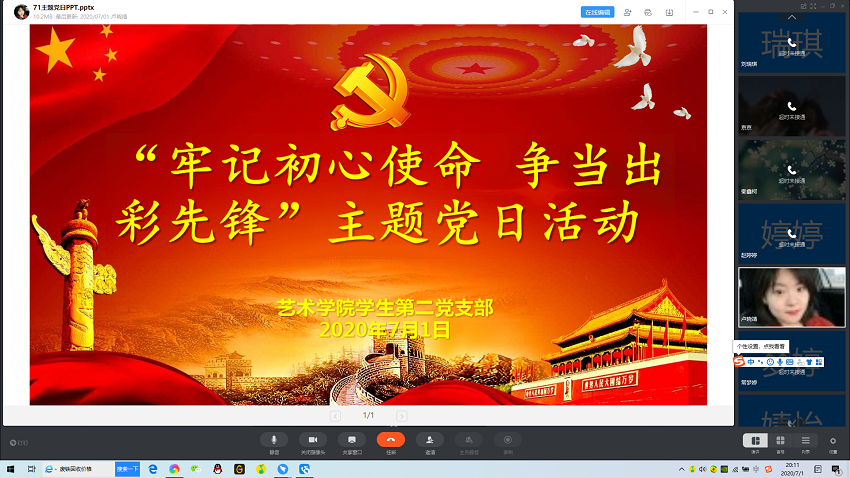 在庆祝中国共产党成立99周年之际,为继承发扬优良传统,加强党员党性修养,进一步增强党员守初心、担使命、勇作为的责任感和使命感,根据学校党委组织部和ac米兰官方网站党委要求,ac米兰官方网站学生第二党支部全体党员,在支部书记卢晓靖、组织委员王霜、宣传委员孟星星三位老师带领下,于7月1日以钉钉视频会议的方式开展了“牢记初心使命、争当出彩先锋”主题党日活动。