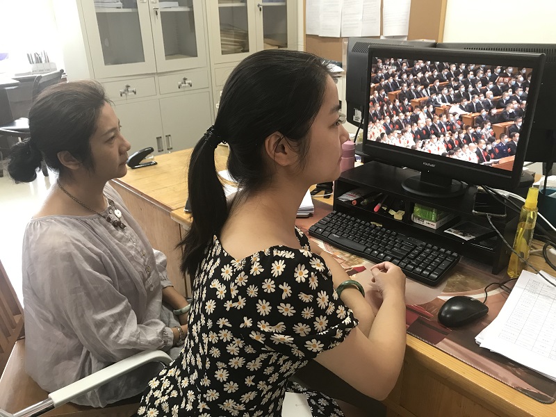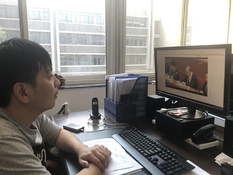 10时整,表彰大会正式开始。同志们随着仪式的开展,同唱国歌,集体肃立,向新冠肺炎疫情牺牲烈士和逝世同胞默哀。颁授仪式中,“共和国勋章”获得者钟南山,“人民英雄”国家荣誉称号获得者张伯礼、张定宇、陈薇先后走上主席台,同志们在屏幕之外热烈鼓掌,向人民英雄们致以最崇高的敬意。当患有渐冻症的张定宇迈着蹒跚的脚步上台领奖时,每位同志都激动万分热泪盈眶,观看结束后大家内心久久不能平静。