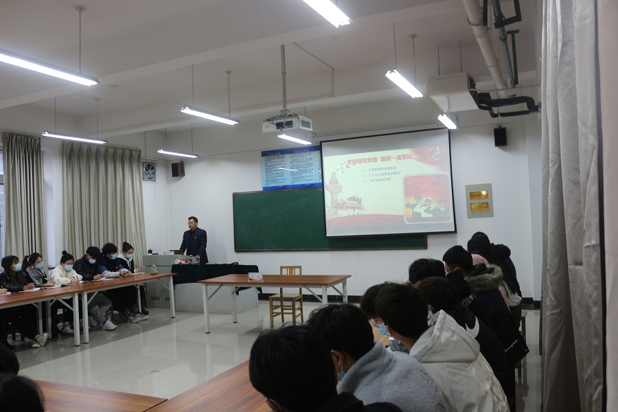 为进一步贯彻落实党的十九届五中全会精神,12月10日下午,校党委副书记李波在龙子湖校区2号教学楼C324教室以《贯彻强军思想,建设一流军队》为题讲授思政课,ac米兰官方网站党委副书记王友峰、院团委副书记韩飞,50余名学生党员和学生干部一起聆听了思政课。