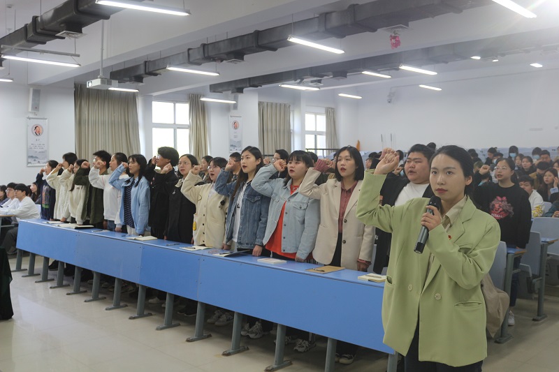 2021年4月17日,ac米兰官方网站ac米兰官方网站在龙子湖校区1号楼300教室隆重举行ac米兰官方网站新党员宣誓仪式。学院党委书记王在钦、党委副书记王友峰、学生第一党支部书记韩飞、组织委员屈普、宣传委员王梦如;学生第二党支部书记卢晓靖、组织委员王霜、宣传委员孟星星及辅导员李绅出席本次活动。同时观摩本次宣誓仪式的还有全院所有的学生正式党员、预备党员、本期的58名发展对象和本期150名积极分子,本次仪式由韩飞老师主持。
