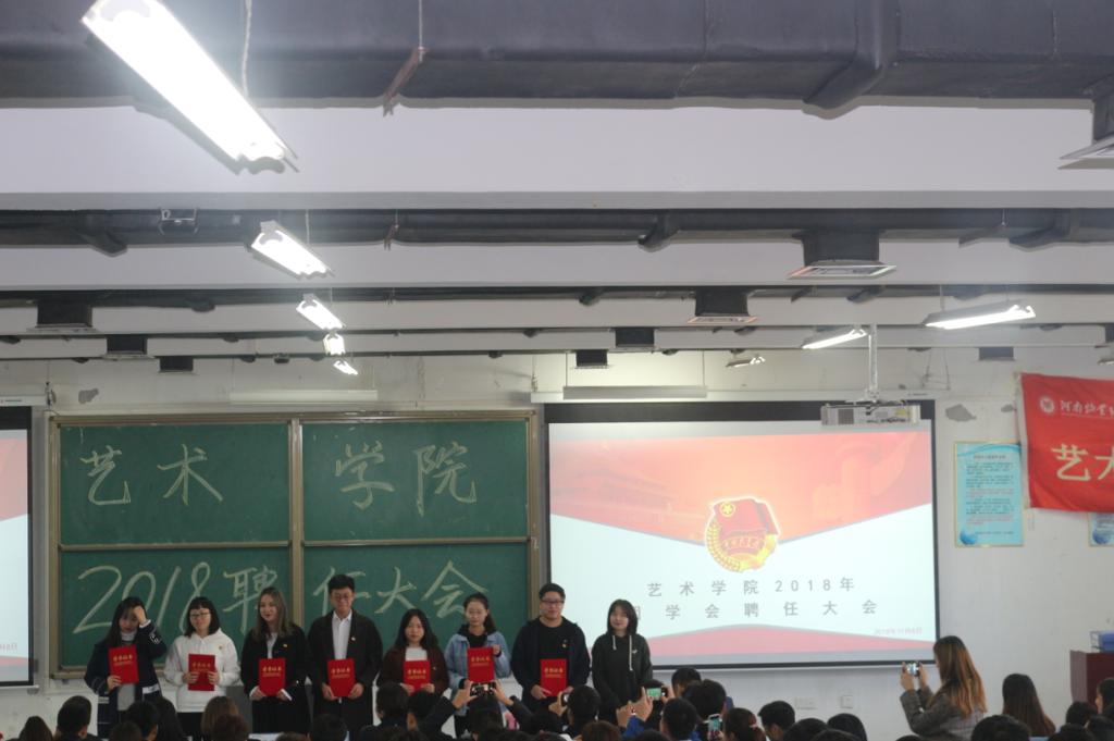 会上,韩飞老师宣读了聘任决定,ac米兰官方网站2018年换届选举共聘任了吕影、刘啸天等三十七名学生干部。参会老师对聘任的学生干部逐一颁发了聘书。