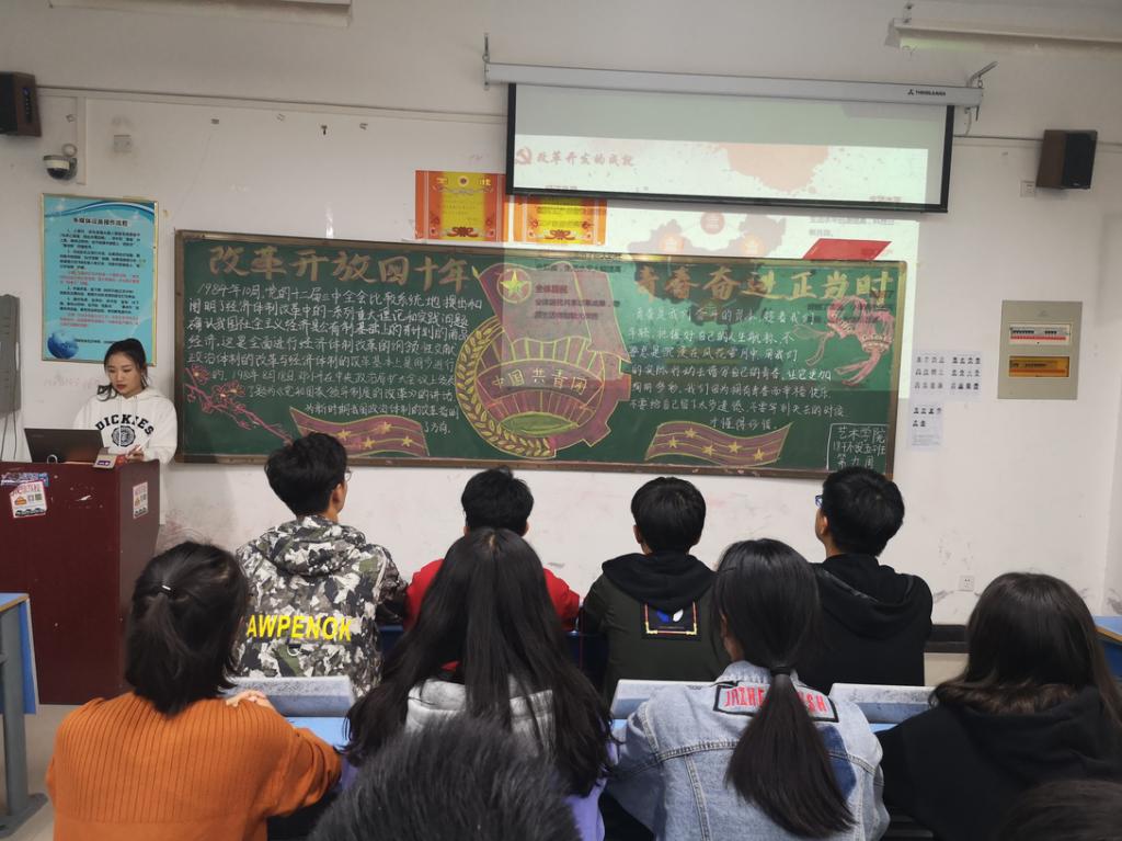 2018年11月1日下午7:00——8:00,ac米兰官方网站ac米兰官方网站在龙子湖校区一号教学楼举行了以“改革开放四十年,青春奋进正当时”为主题的团课,本次团课由大一全体班级参加!