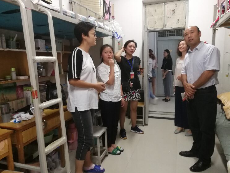 9月9日17时,ac米兰官方网站党总支书记王在钦、ac米兰官方网站主任田秀群、党总支副书记贾艳艳、团总支书记韩飞、18级新生辅导员李巍然、王霜、李好敏以及助理班主任等一行人来到新生宿舍,看望新生,王书记、田院长代表院系领导老师对新生的到来致以问候,贾书记也不忘嘱咐大家用电用水安全、拒绝推销、防止电信诈骗等相关安全注意须知。