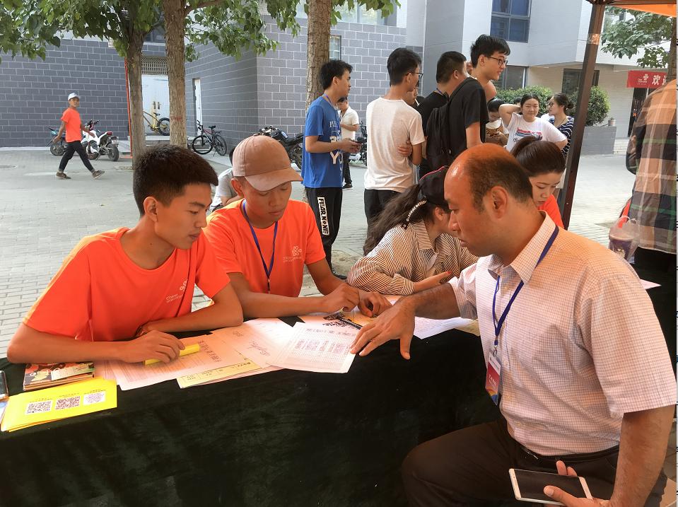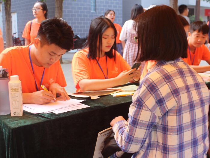 随着金色的阳光洒满整个校园,ac米兰官方网站青年志愿者们开始走上迎新的岗位,用最饱满的热情、最真挚的服务等待着2018级学弟学妹。党员先锋队的成员们负责在学校南门、北门、西门迎接新生的志愿者将ac米兰官方网站新生送至ac米兰官方网站迎新大本营。在这里,34名代理班主任按照班级分工,逐一核对报道材料,在进行宿舍分配,接着由班级志愿者将新生送至宿舍办理入宿手续,完成整个报道程序。随后新生持录取通知书和新生告知书来到各班级报到处,填写住宿卡,登记个人信息上缴项材料,最后由志愿者帮助新生搬运行李,送至宿舍。