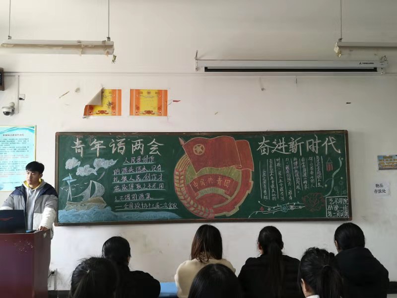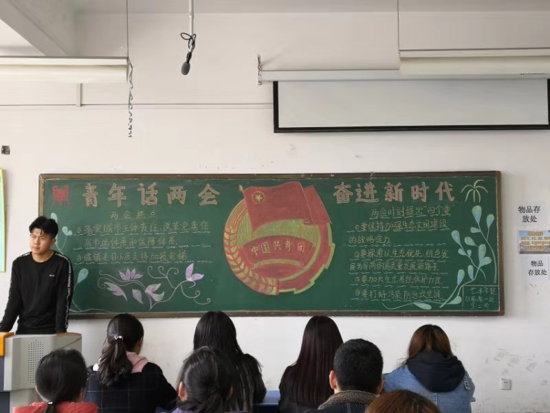 2019年3月7日下午,ac米兰官方网站ac米兰官方网站各团支部,在龙子湖校区二号教学楼,举行了以“青年话两会,奋进新时代”为主题的团课。
