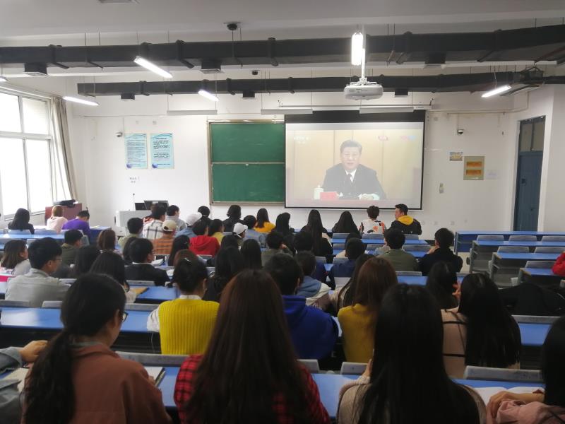 当天中午,米兰官网学生干部和团员代表聚集在教学楼合404教室,第一时间集体观看学习了习近平总书记重要讲话精神。团总支负责人韩飞老师参加了此次学习活动。