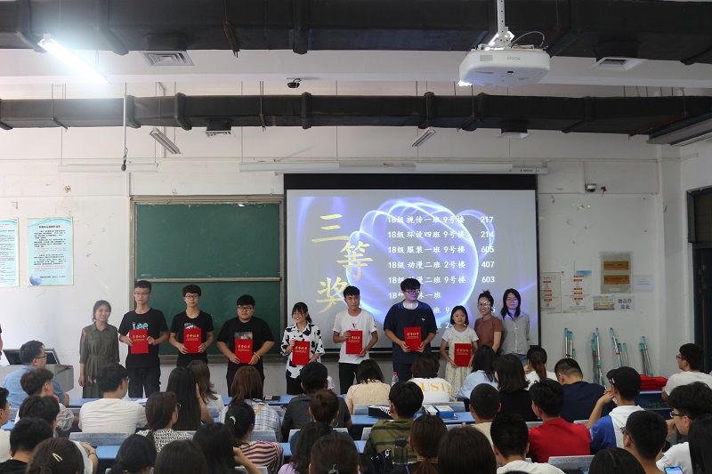 活动开始,主持人先是介绍了整个活动过程,从筹备到检查,最后系统整理。韩飞老师随后公布了获奖名单,经过层层筛选,本次艺术节共有35个宿舍分别获得一二三等奖和优秀奖。莅临现场的老师逐一对获奖单位进行了颁奖。