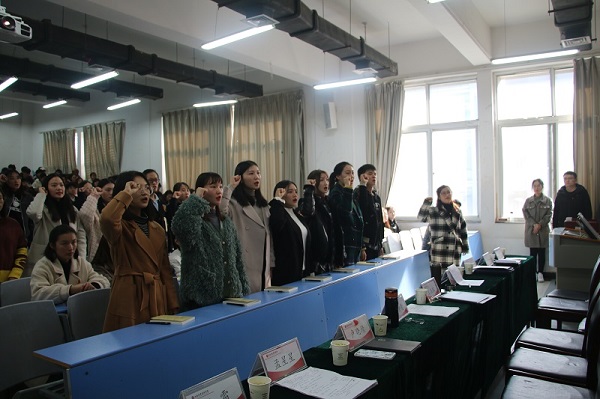 仪式最后一项内容是王在钦书记讲话,他首先对所有参加宣誓的新党员表示祝贺,随后对所有参加本次仪式的学生党员、预备党员、发展对象、积极分子提出三点希望:一是要努力学习,不仅仅努力学习思想政治理论,也努力学习科学文化知识;二是要争做榜样,在学习、工作、生活各方面敢于亮身份,勇于做表率,发挥学生党员的先锋模范作用;三是要勇于奉献,把全心全意为人民服务落在实处,全心全意为师生服务,不忘初心,牢记使命,不尚空谈,多干实事,在学生时代谱写美丽篇章。