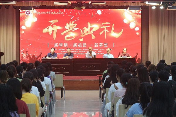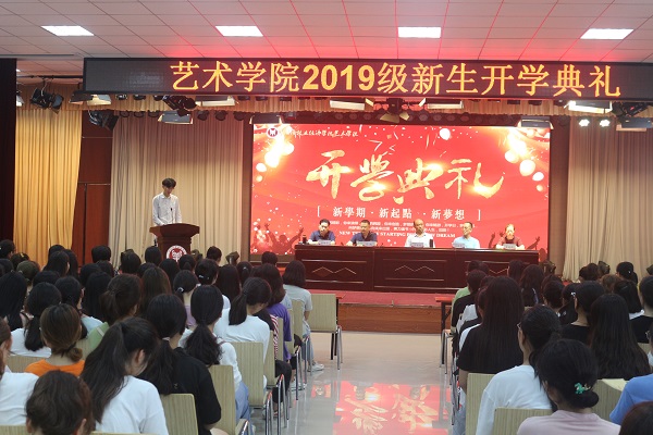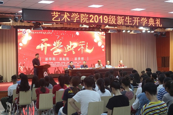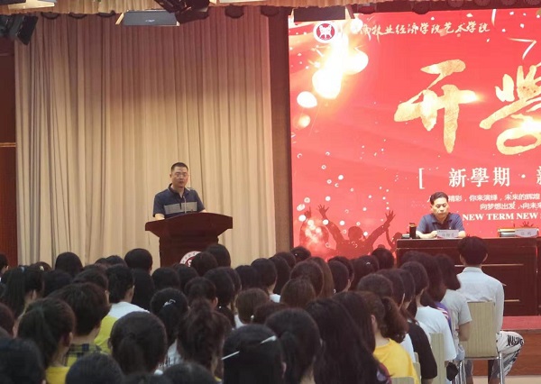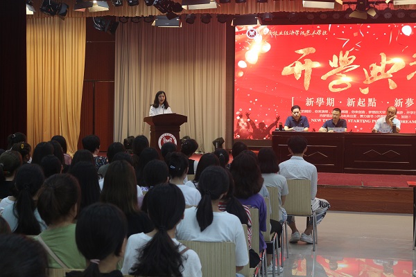 2019年9月10日中午,ac米兰官方网站在龙子湖校区大学生活动中心隆重举行2019级新生开学典礼。出席开学典礼的有学院党委书记王在钦,院长张鹏,正处级组织员许国平、杨柳青,副书记贾艳艳及ac米兰官方网站各教研室教师代表和辅导员老师,典礼由副书记贾艳艳主持。
