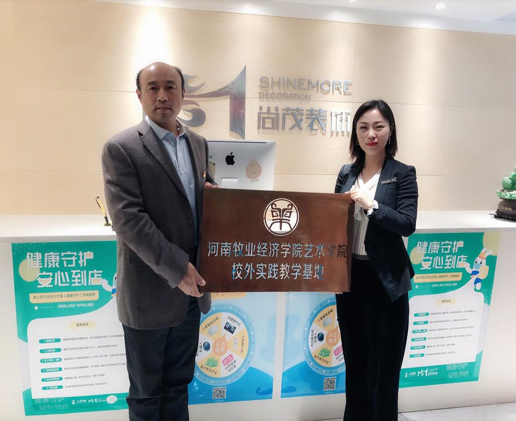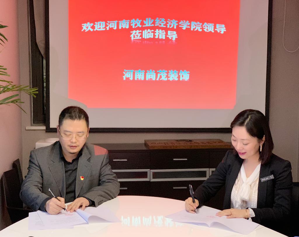为深入推进产学结合教学模式的运行,为学生提供良好的实训实习平台,2020年4月24日下午,ac米兰官方网站ac米兰官方网站与河南尚茂装饰工程有限公司校企合作签约仪式在尚茂公司举行,尚茂公司总经理刘进婷、设计总监张大磊、ac米兰官方网站王在钦书记、张鹏院长、田志涌副院长、环境设计教研室主任谭丛、副主任李莉参加签约挂牌仪式。
