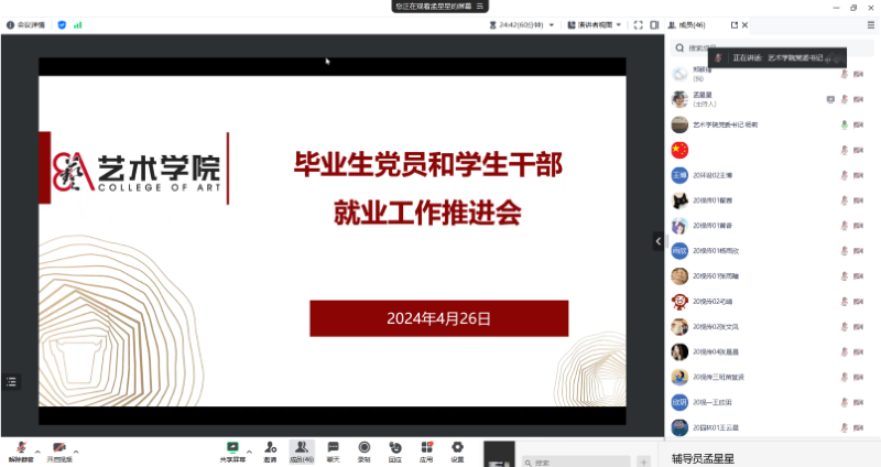为贯彻落实学校2024届毕业生就业创业工作的相关要求,切实推动米兰官网毕业生高质量就业,4月26日,ac米兰官方网站通过线上腾讯会议的形式召开了就业工作推进会。院党委书记杨莉、党委副书记刘显出席本次会议,毕业班辅导员孟星星、屈普、陈肖孟以及毕业生党员和毕业班学生干部参加会议,会议由孟星星主持。